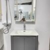 - Tủ gương có thiết kế hiện đại sáng tạo: bên trái là gương, bên phải là ngăn tủ. Giúp tiết kiệm diện tích và tối ưu không gian vệ sinh của gia chủ.
