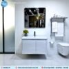 - Tủ Lavabo: Được phủ bên ngoài lớp sơn cao cấp chống thấm nước, ngăn ngừa mối mọt gây mất thẩm mỹ