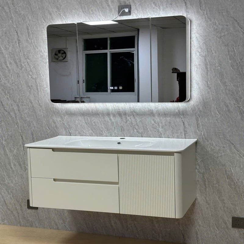 - Tủ Lavabo: Được phủ bên ngoài lớp sơn cao cấp chống thấm nước, ngăn ngừa mối mọt gây mất thẩm mỹ