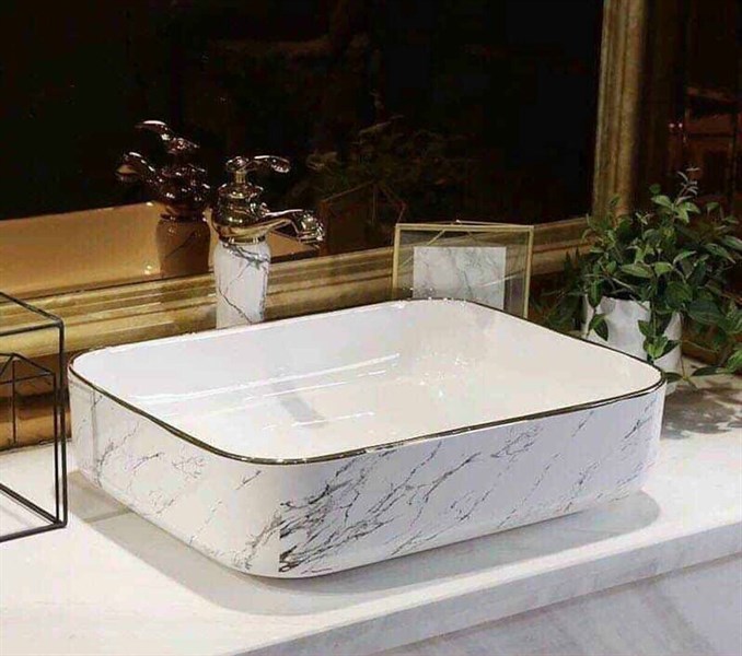 Đánh giá Chậu dương bàn chữ nhật vân đá viền vàng AC-CS3004JP