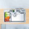 - Chậu thiết kế lắp âm – kèm theo tích hợp thêm nhiều phụ kiện bếp đi kèm cùng với công năng đa dạng giúp cho việc vào bếp nhẹ nhàng và đơn giản hơn.