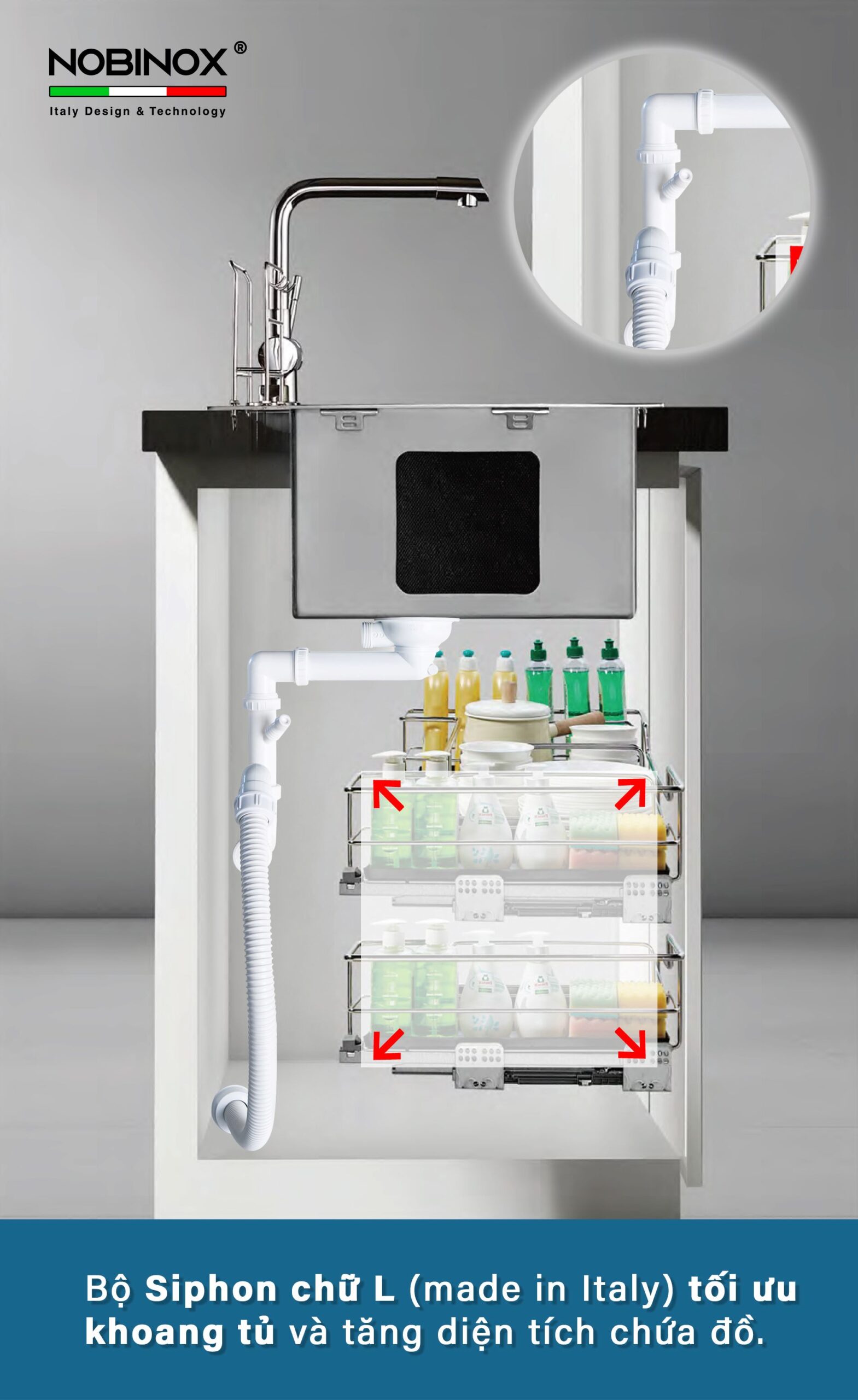 • Chậu thiết kế lắp âm hoặc bán âm – kèm theo tích hợp thêm nhiều phụ kiện bếp đi kèm cùng với công năng đa dạng giúp cho việc vào bếp nhẹ nhàng và đơn giản hơn.