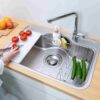 - Chậu thiết kế lắp âm – kèm theo tích hợp thêm nhiều phụ kiện bếp đi kèm cùng với công năng đa dạng giúp cho việc vào bếp nhẹ nhàng và đơn giản hơn.