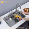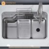 - Giỏ đựng đồ inox 304 thiết kế phù hợp với kích thước và hình dạng của chậu, là một giải pháp thông minh để tận dụng không gian trong chậu và giữ cho đồ dùng như bàn chải, xà phòng và thớt gỗ được sắp xếp gọn gàng và tiện lợi.