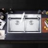 - Độ sâu của chậu A lên đến 24 cm, hạn chế tối đa hiện tượng bắn nước. Phù hợp để rửa rau củ, đồ ăn cũng như các dụng cụ lớn 1 cách dễ dàng