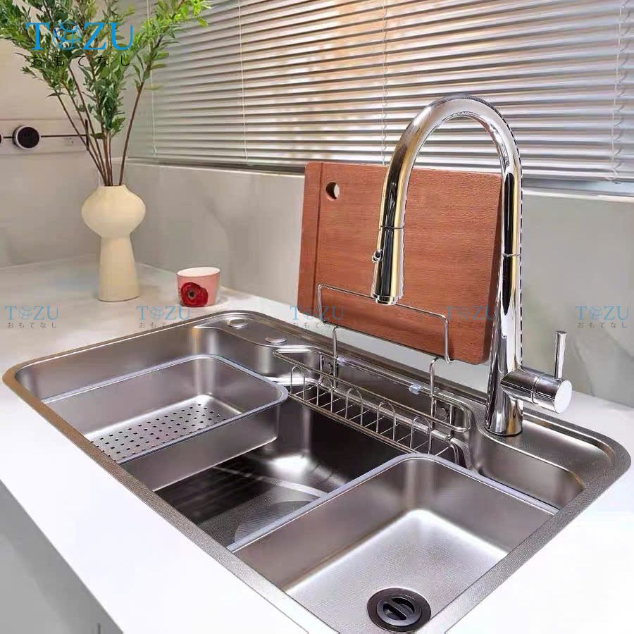 • Lòng chậu sâu, hố chậu lớn, được thiết kế gờ hạ bậc thông minh, cho phép tích hợp phụ kiện làm bếp như thớt, rổ, chậu mini,… giúp bạn tiết kiệm thời gian làm bếp hiệu quả