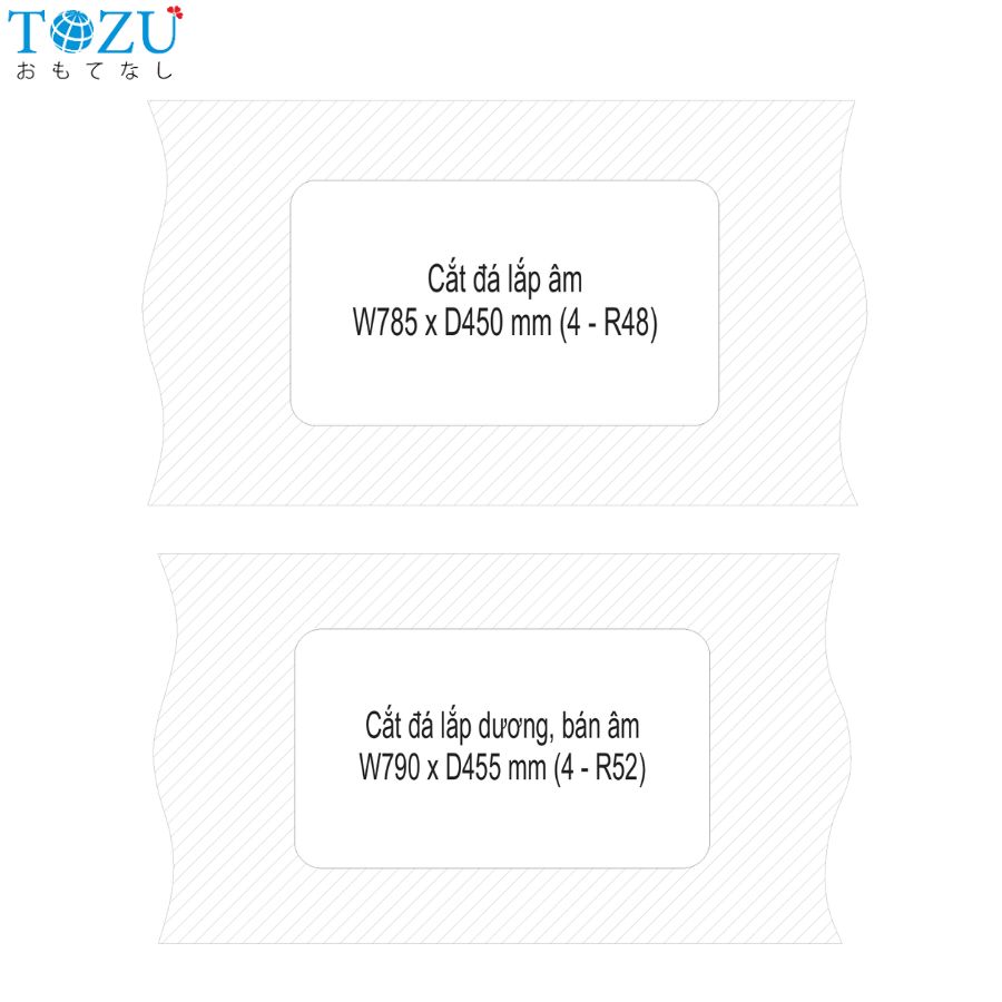 • Lắp âm : W785 x D450 mm (4 – R48)