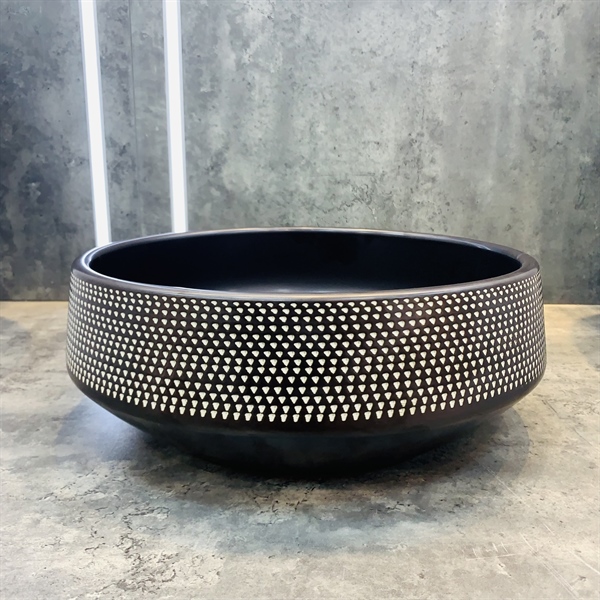 CHẬU RỨA MẶT TRÒN VÂN KIM CƯƠNG LÒNG ĐEN MT808