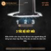 Trên thân của máy khử mùi thức ăn thiết kế điều khiển cảm ứng 3 tốc độ hút cho người dùng dễ dàng lựa chọn tùy theo nhu cầu và món ăn nấu trên bếp.