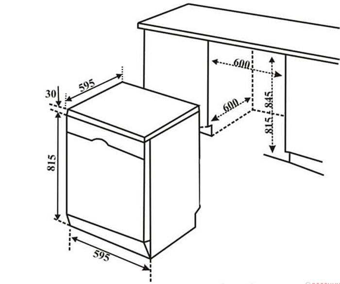 - Kê máy rửa bát xa các nguồn nhiệt, khu vực dễ cháy nổ.