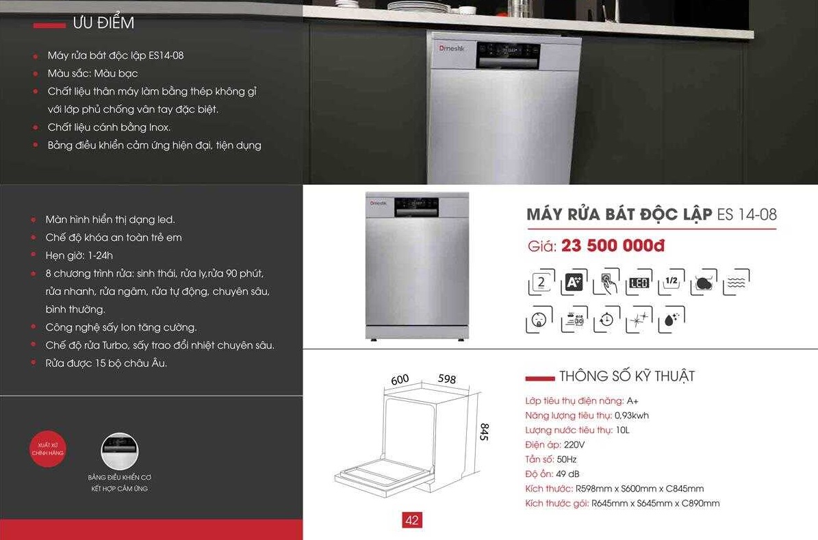 ĐẶC ĐIỂM NỔI BẬT CỦA MÁY RỬA BÁT ĐỘC LẬP DMESTIK ES 14-08