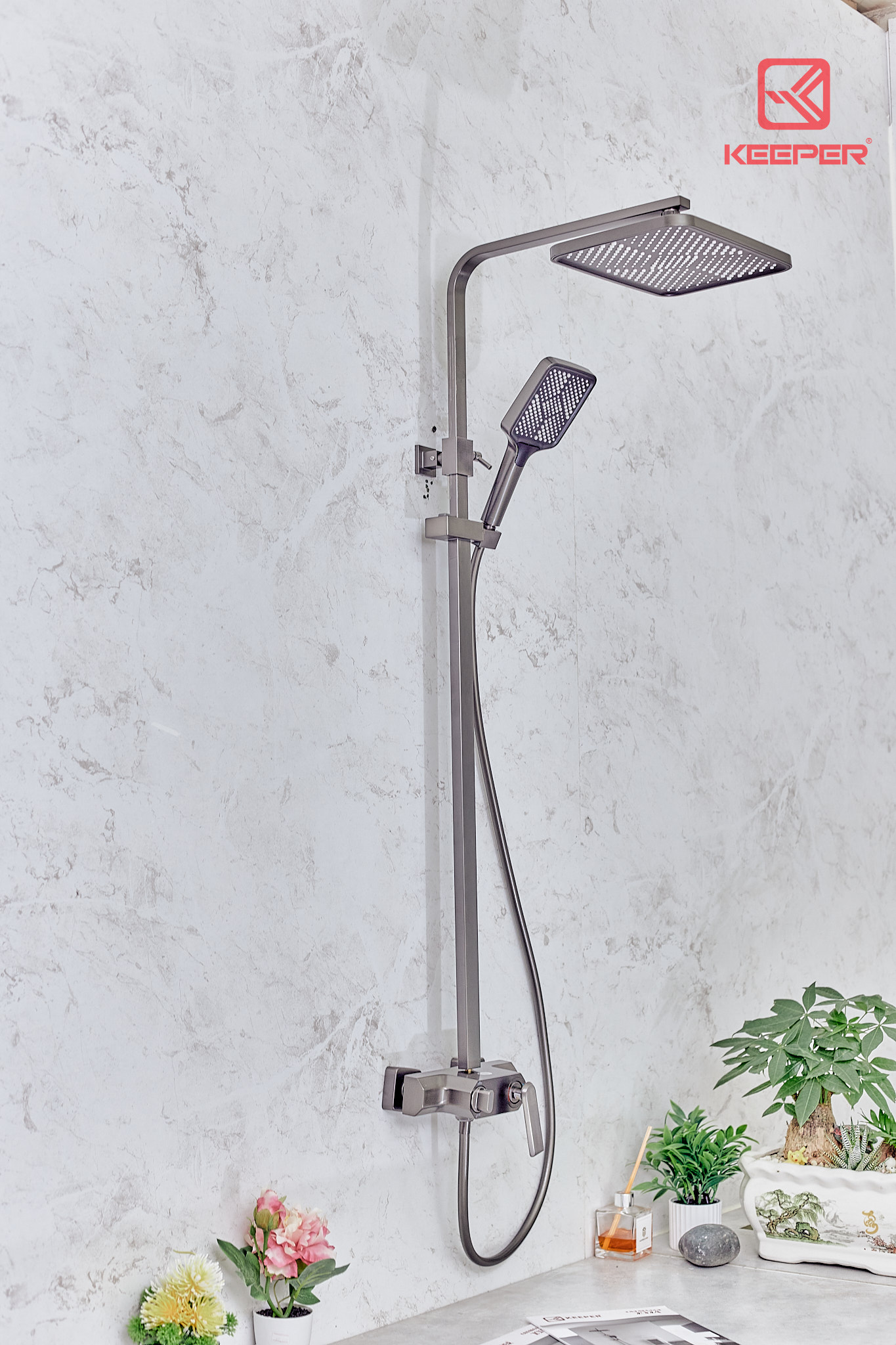 • Công nghệ sơn tĩnh điện (Electrostatic Powder Coating): Bề mặt sen cây được phủ một lớp bột sơn khô, sau đó nung nóng để tạo lớp phủ đồng nhất, thường áp dụng trên các mẫu có màu đen nhám hoặc xám. Lớp sơn tĩnh điện tạo bề mặt nhám mịn, giảm thiểu bám cặn nước và dễ dàng vệ sinh