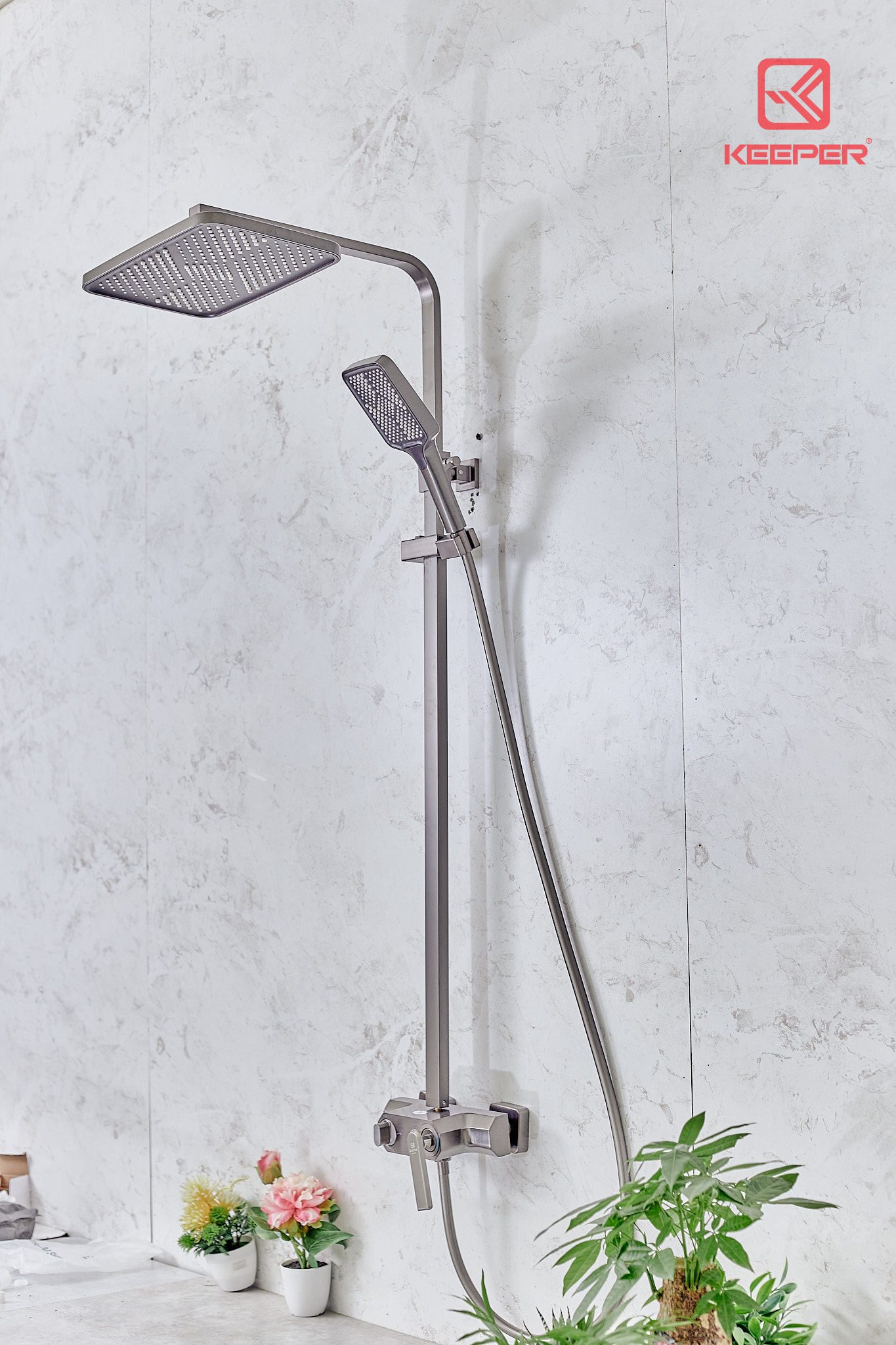 • Inox 304 không gỉ: Một số bộ phận như thân sen, giá đỡ hoặc tay sen sử dụng thép không gỉ.  Inox 304 không bị oxi hóa, đảm bảo độ bền trong điều kiện ẩm ướt và tiếp xúc thường xuyên với nước. Trọng lượng nhẹ, dễ lắp đặt, nhưng vẫn đảm bảo độ cứng cáp và an toàn khi sử dụng.