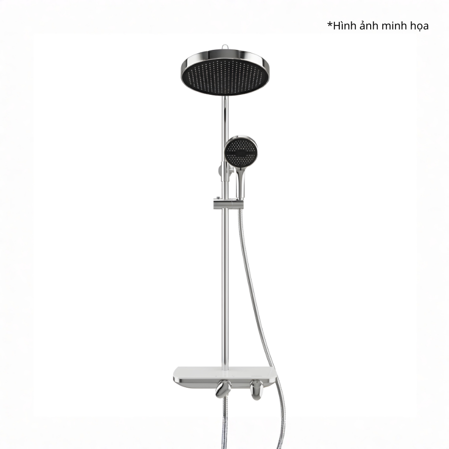 • Bộ sản phẩm gồm: 1 củ sen, 1 dây dẫn nước, 1 tay sen, 1 bát sen, 1 bộ ống đứng, ốc nối và các vít đi kèm.