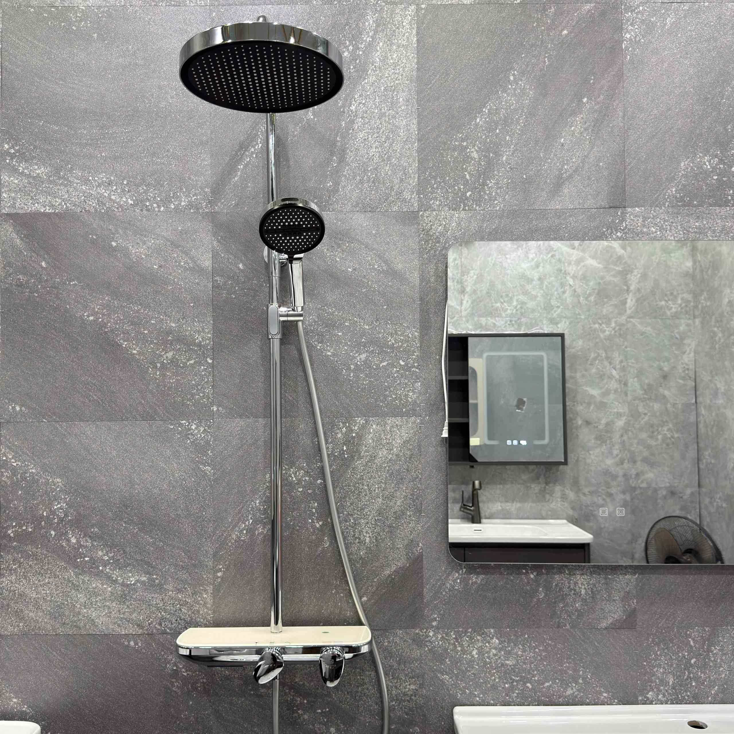 • Công nghệ sơn tĩnh điện (Electrostatic Powder Coating): Bề mặt sen cây được phủ một lớp bột sơn khô, sau đó nung nóng để tạo lớp phủ đồng nhất, thường áp dụng trên các mẫu có màu đen nhám hoặc xám. Lớp sơn tĩnh điện tạo bề mặt nhám mịn, giảm thiểu bám cặn nước và dễ dàng vệ sinh