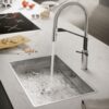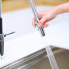 - Tay vòi ngang di chuyển mượt mà, linh hoạt, tối ưu không gian bàn bếp.