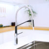 - Thiết kế đầu vòi cong bằng lò xo tạo sự thanh lịch kết hợp tay cầm điều chỉnh 2 tia nước ( chế độ mưa, chế độ phun ) di chuyển tự do trong quá trình làm bếp.