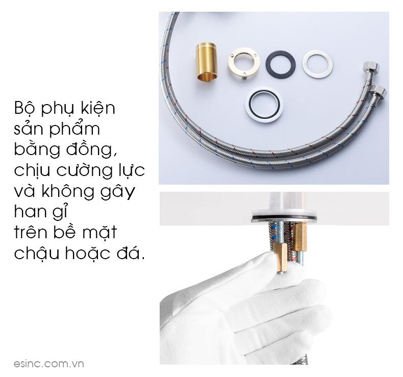 - Phụ kiện lắp đặt bằng đồng, chống hoen gỉ.