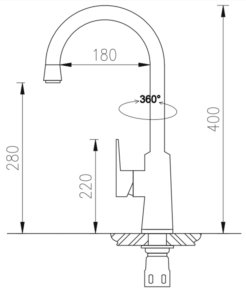 - Chiều cao từ mặt chậu đến đầu vòi (mm): 280
